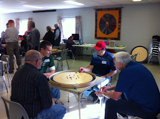 The first two rounds of the “first to 11 points” final went against the hammer. Lots of 20s were scored in the 3rd round, but Ray Beierling’s follow through 20 that bounced off a peg was decisive as the Beierlings held their hammer for 4-2.